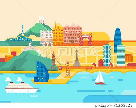 Barcelona Illustration - Barcelona Spain Big City Skyline Vector Flat Style Stock Vector Illustration Of European Barcelona 55016447 / Barcelona skyline poster stock vector.